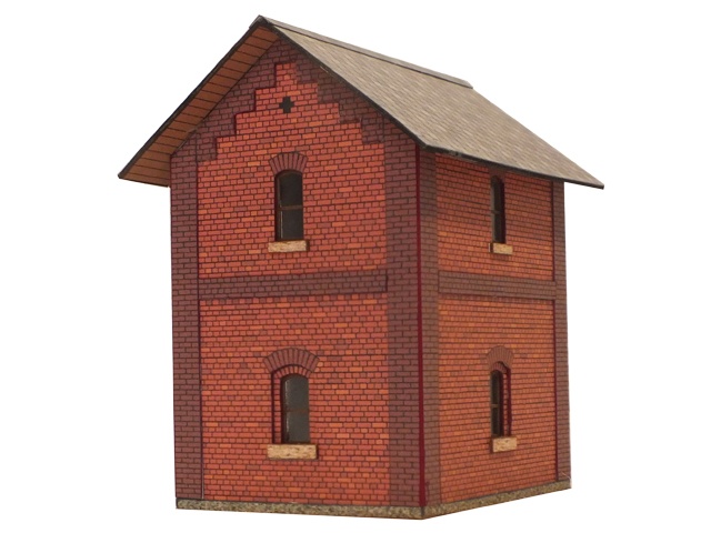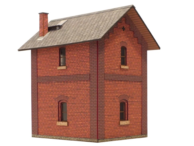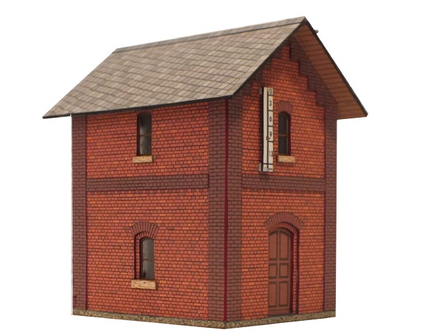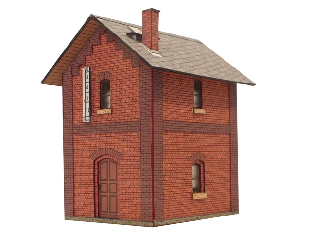Kleines, aus Klinker gemauertes Gebäude mit zahlreichen Verzierungen aus anders farbigen Mauersteinen. Im Inneren befindet sich ein Hochbehälter, dessen Vorrat zur Versorgung der Dampflokomotiven mit Wasser dient.