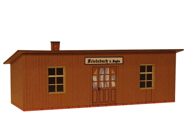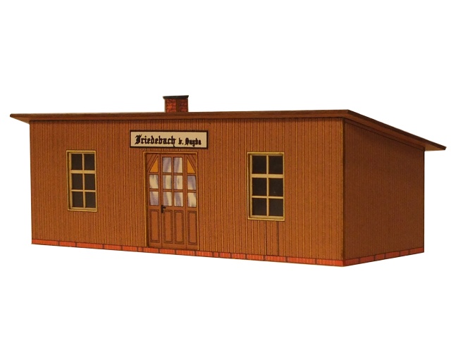 Die Haltestelle Friedebach ist eine einfache, hölzerne Wartehalle und beherbergte den Dienstraum und die Wartehalle.