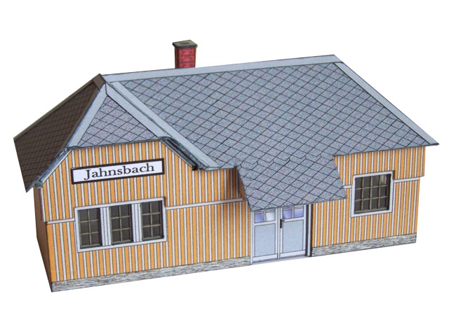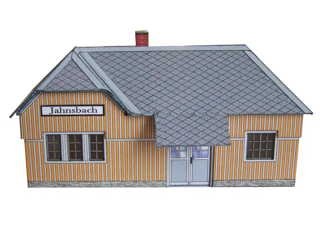 Der Bahnhof Jahnsbach gehört zum Thumer Netz. Das kleine Gebäude ist aus Holz und beherbergte den Warteraum und einen Dienstraum. Heute wird es privat als Gartenlaube genutzt.