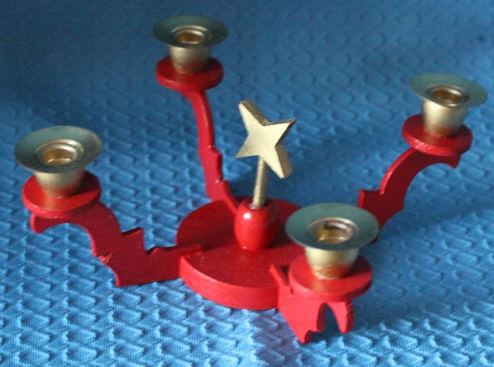 Der vierarmige Tischleuchter symbolisiert die 4 Adventssonntage. Am 1.Advent wurde die erste Kerze angezündet, an jedem weiteren Adventssonntag zündete man eine Weitere an, bis alle 4 brannten. Vierarmiger Tischleuchter für Puppenkerzen