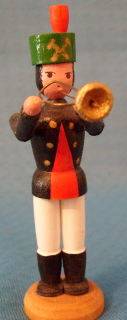 Wollen Sie auch mit zur Bergparade? Dann folgen Sie diesem 9 cm großen Bergmann, er nimmt Sie beim Klang der Trompete mit.