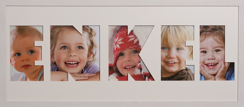 Die Buchstaben-Ausschnitte für Ihre Fotos hinterlegen wir dem Anlass entsprechend mit farbigem Papier, hier haben Sie keine Auswahlmöglichkeit.