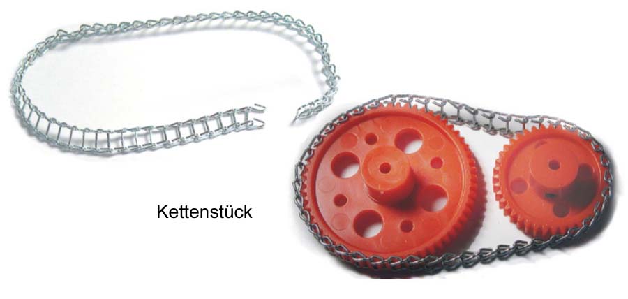 - Kettenstück (1 m), mit Hilfe einer Flachzange auf ca. 28 cm Länge einstellen und dieses Stück schließen - 1 Stück