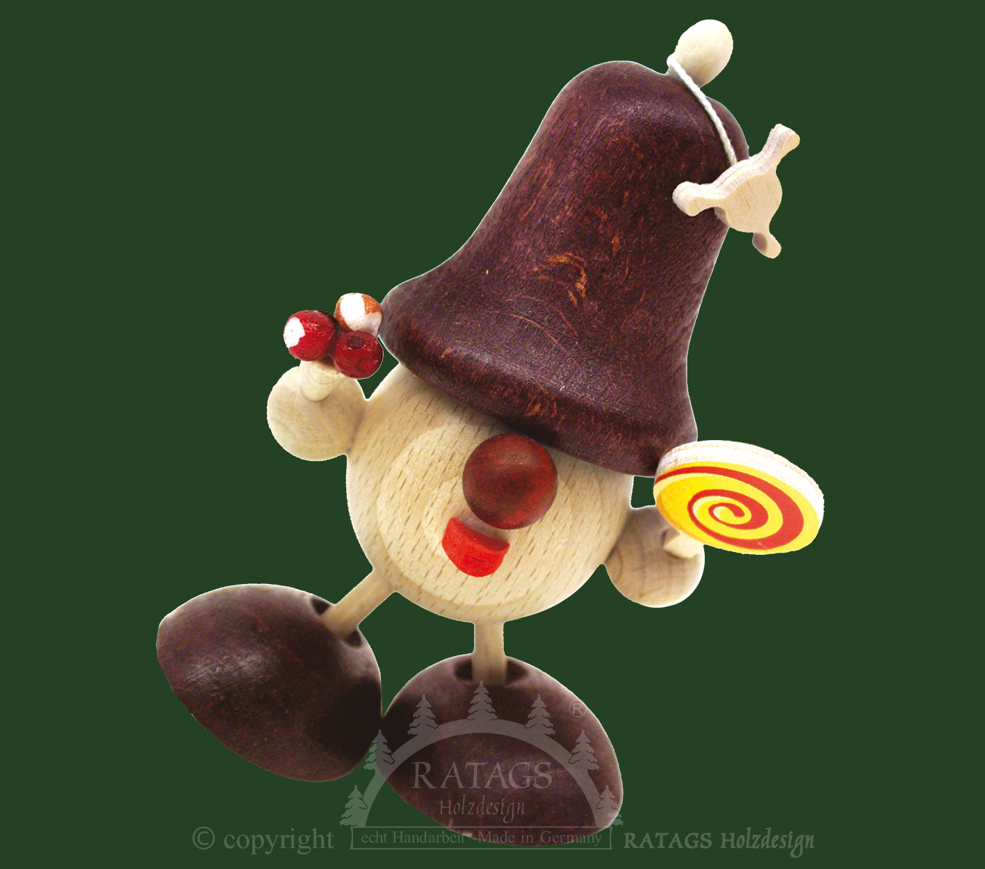 Dieser süße Rats ist ein totales Schleckermäulchen. Er wurde mit Lutschern verziert. Hut und Füße wurden braun gebeizt.