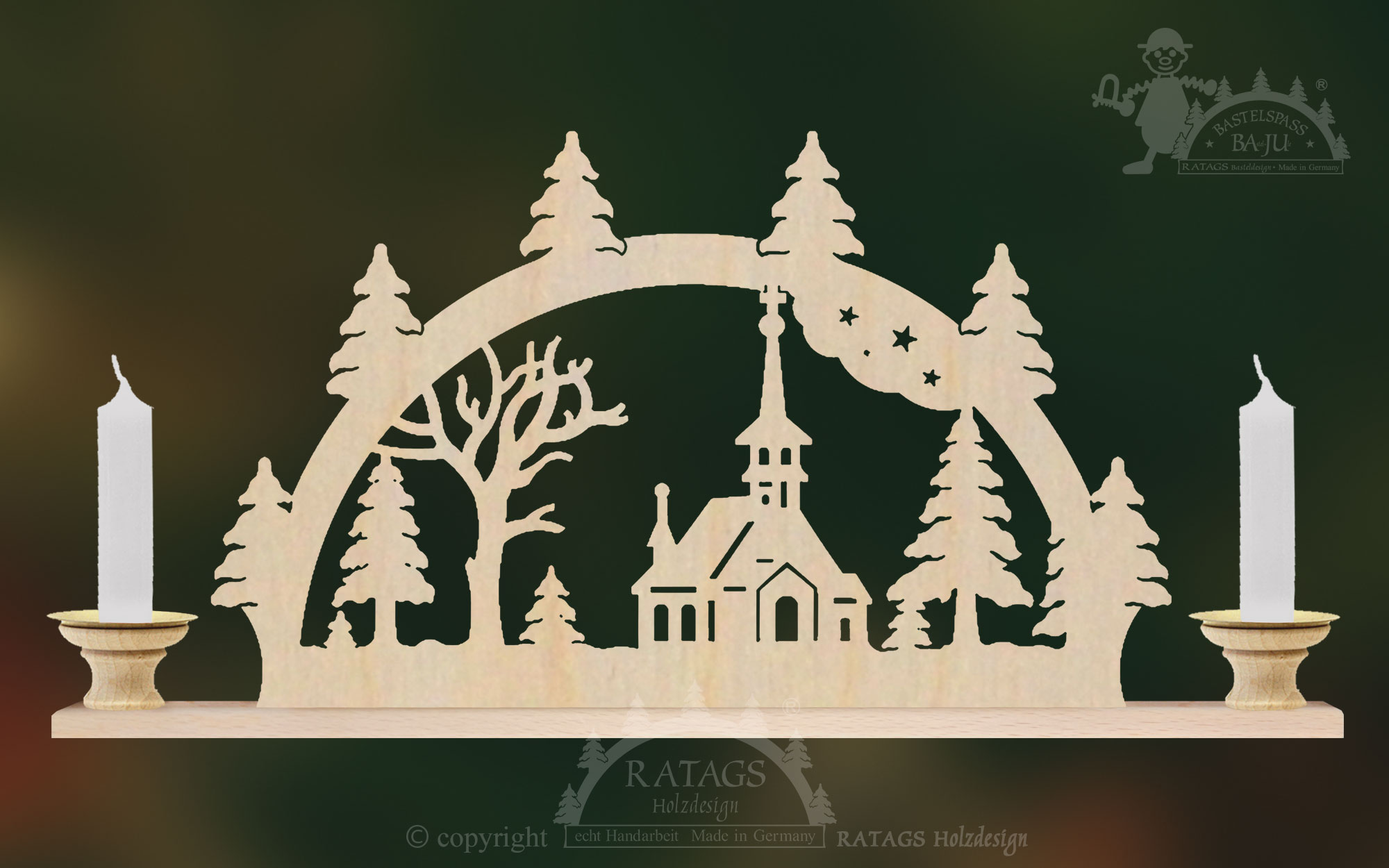 Produktinformationen "Tischlichterbogen für 2 Pyramidenkerzen Kirchlein"
