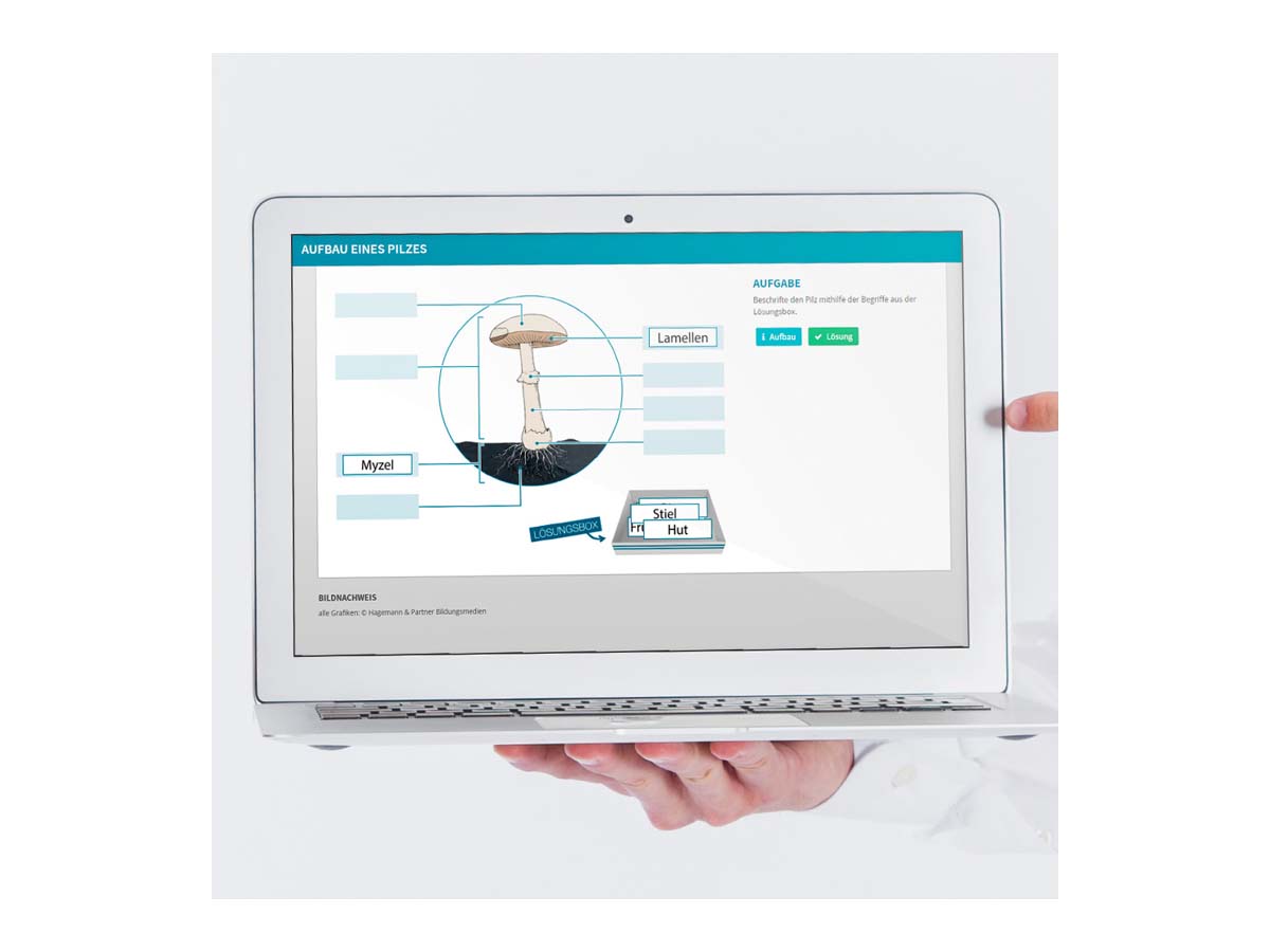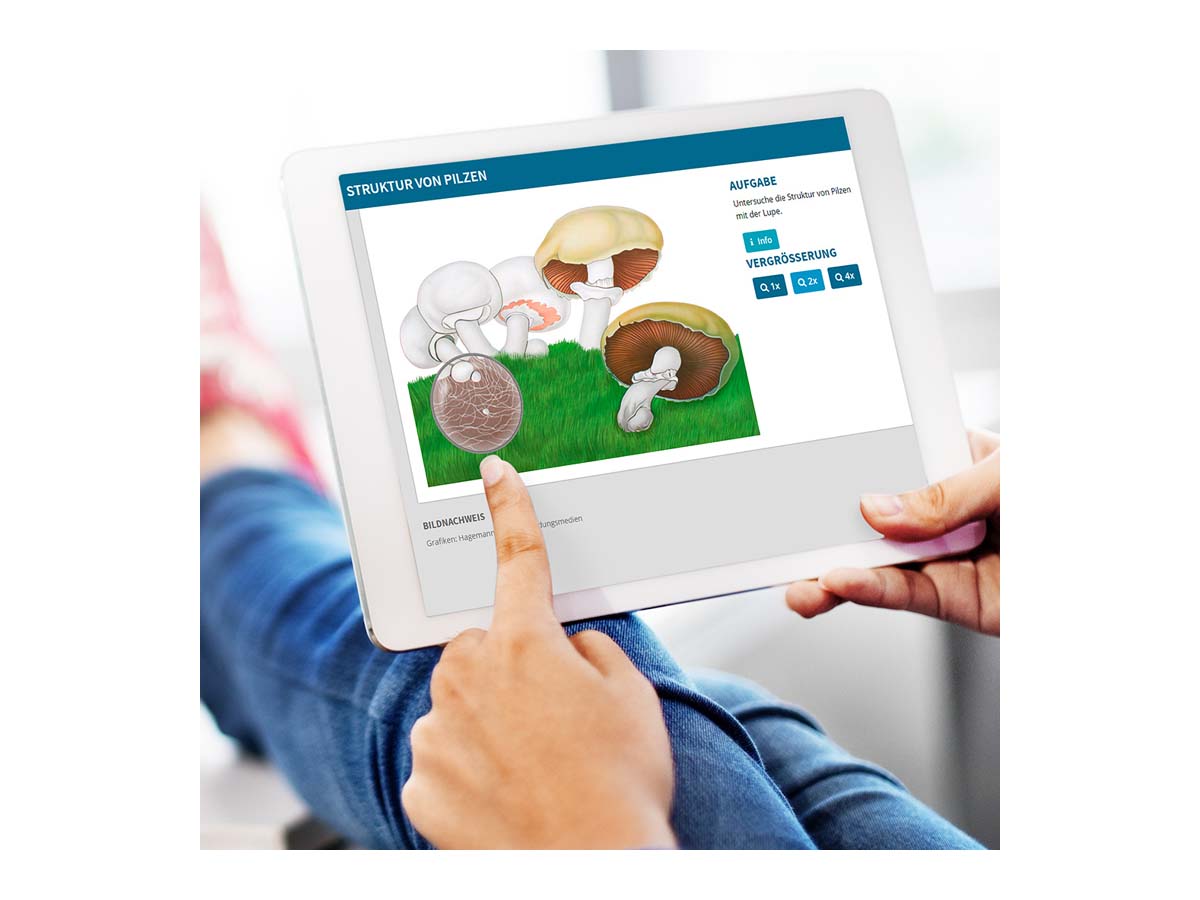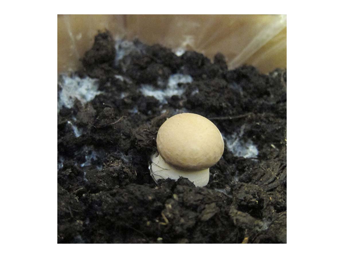 Beobachten Sie, wie sich das Pilzgeflecht (Myzel) ausbreitet und die Pilze heranwachsen.