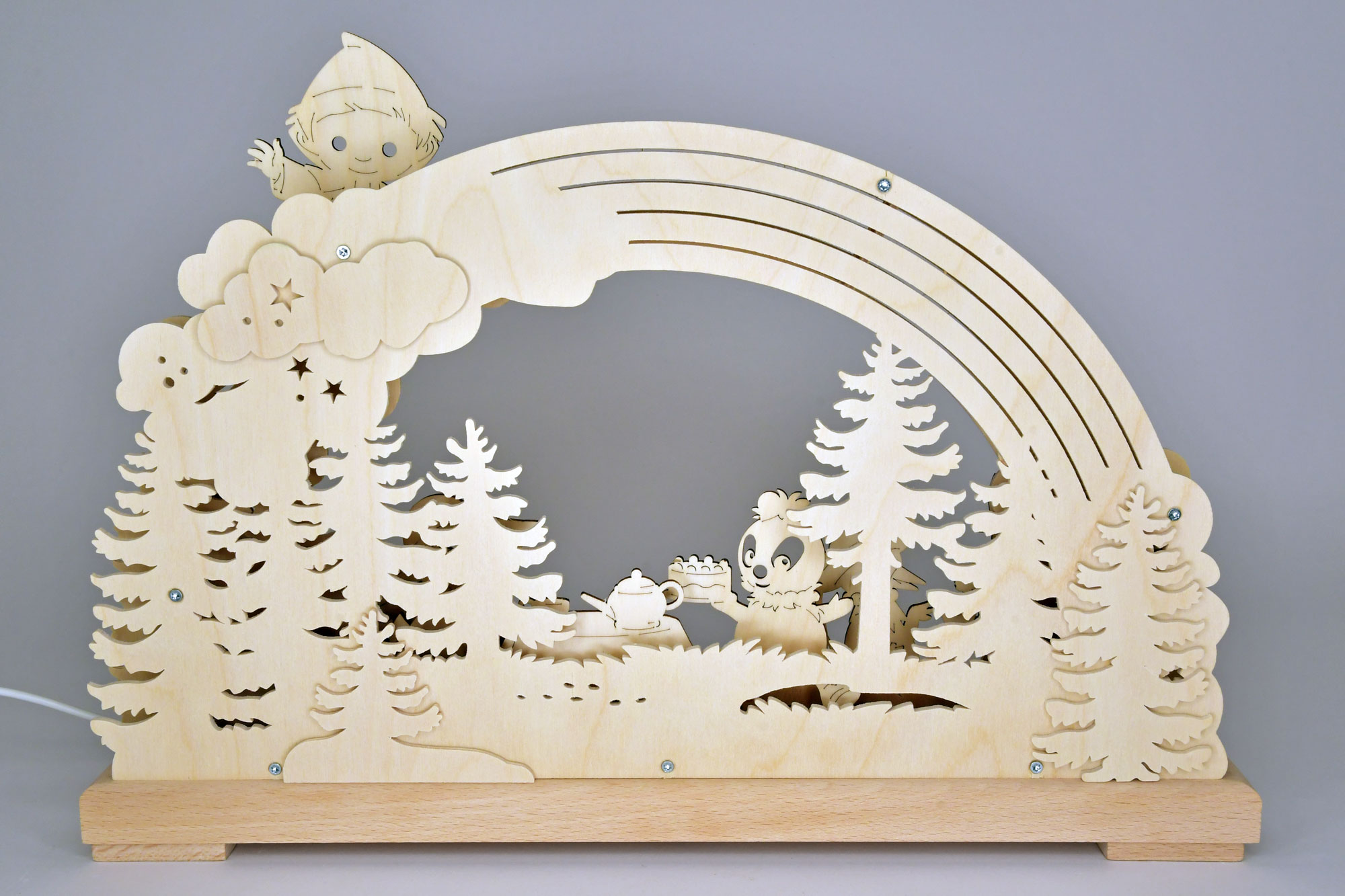 Produktinformationen "3D-LED-Schwibbogen klein, Sandmännchen und Freunde unter dem Regenbogen"