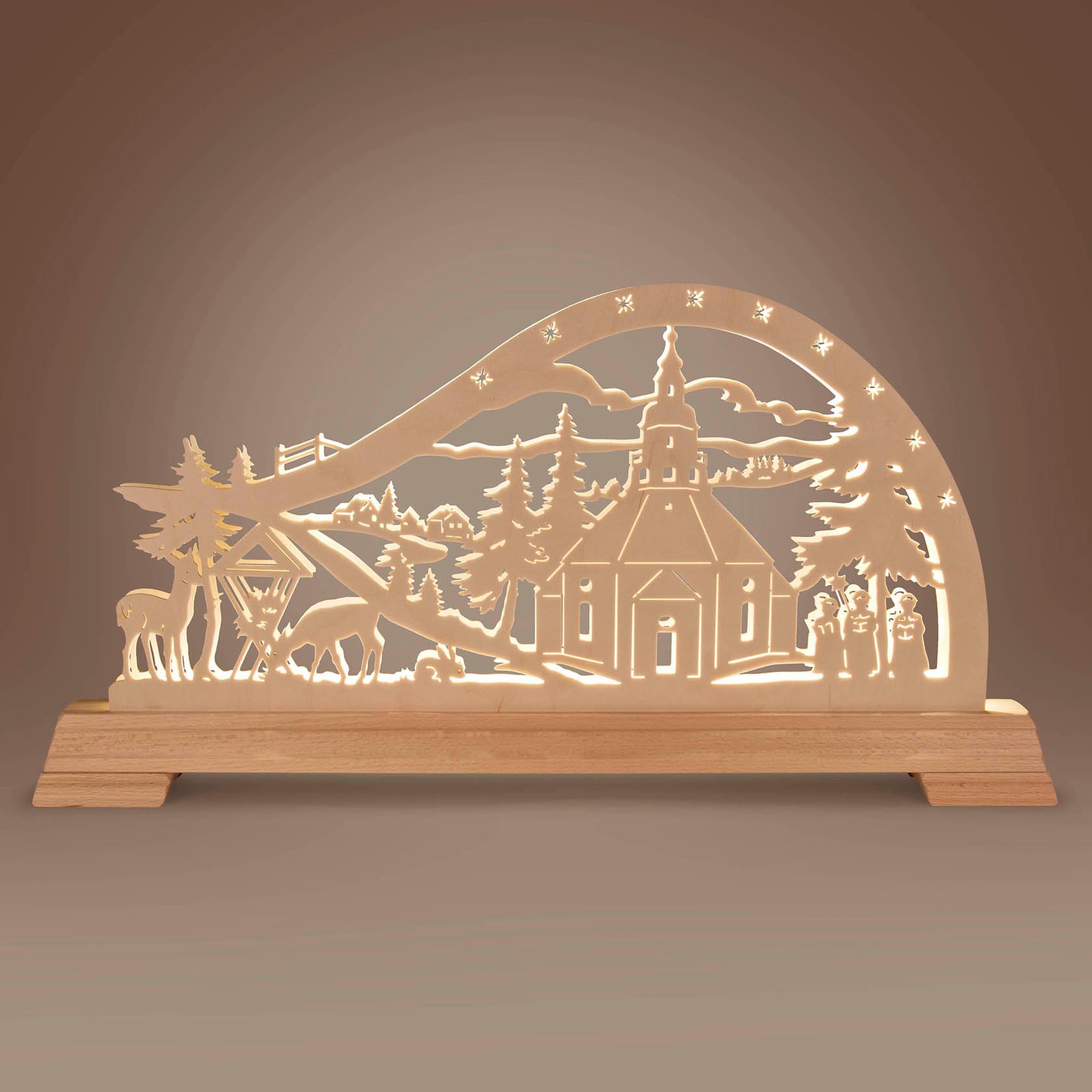 Schwibbogen Seiffener Kirche mit LED-Beleuchtung 32x63cm