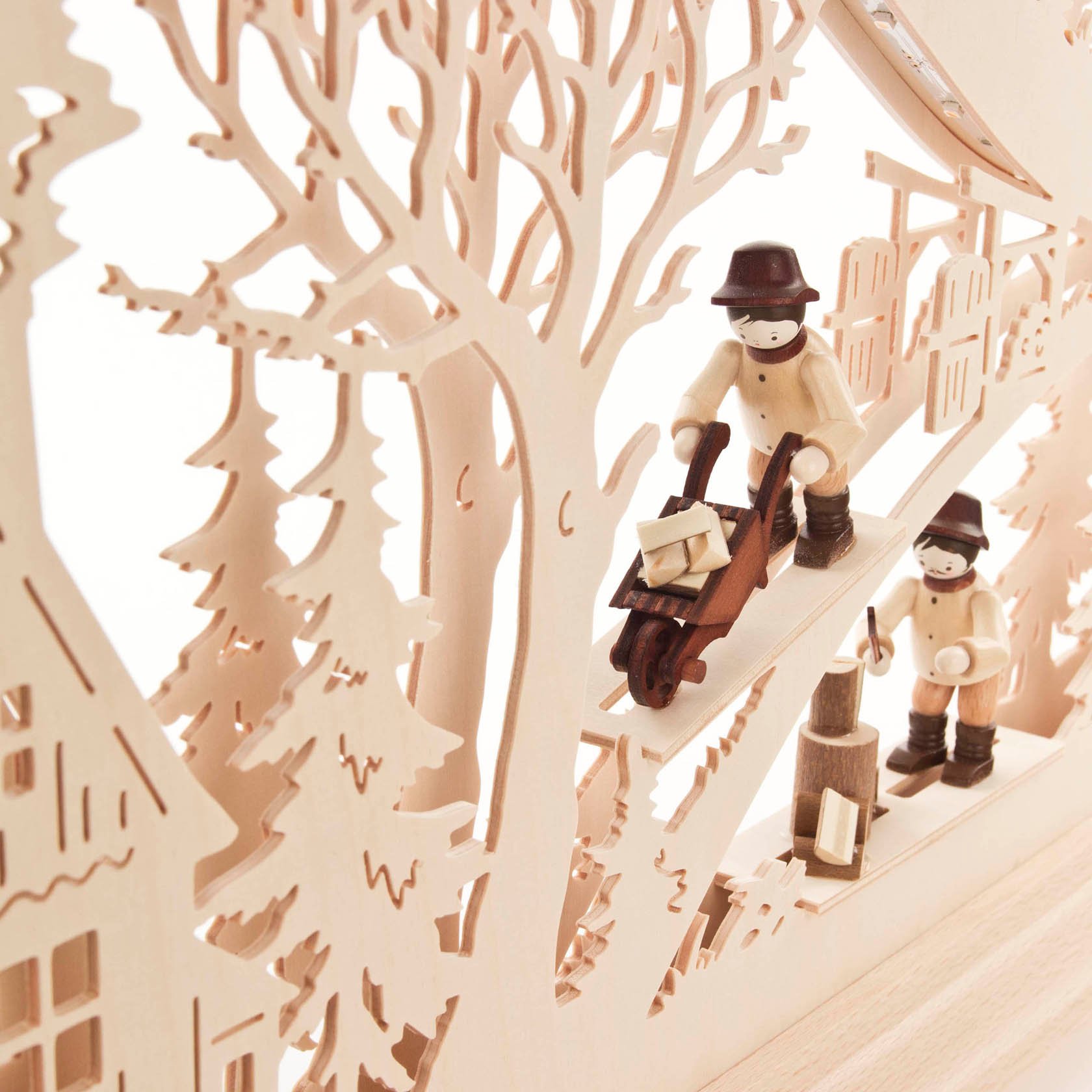 Schwibbogen Waldhütte mit Waldarbeiter und LED Beleuchtung 32x63cm